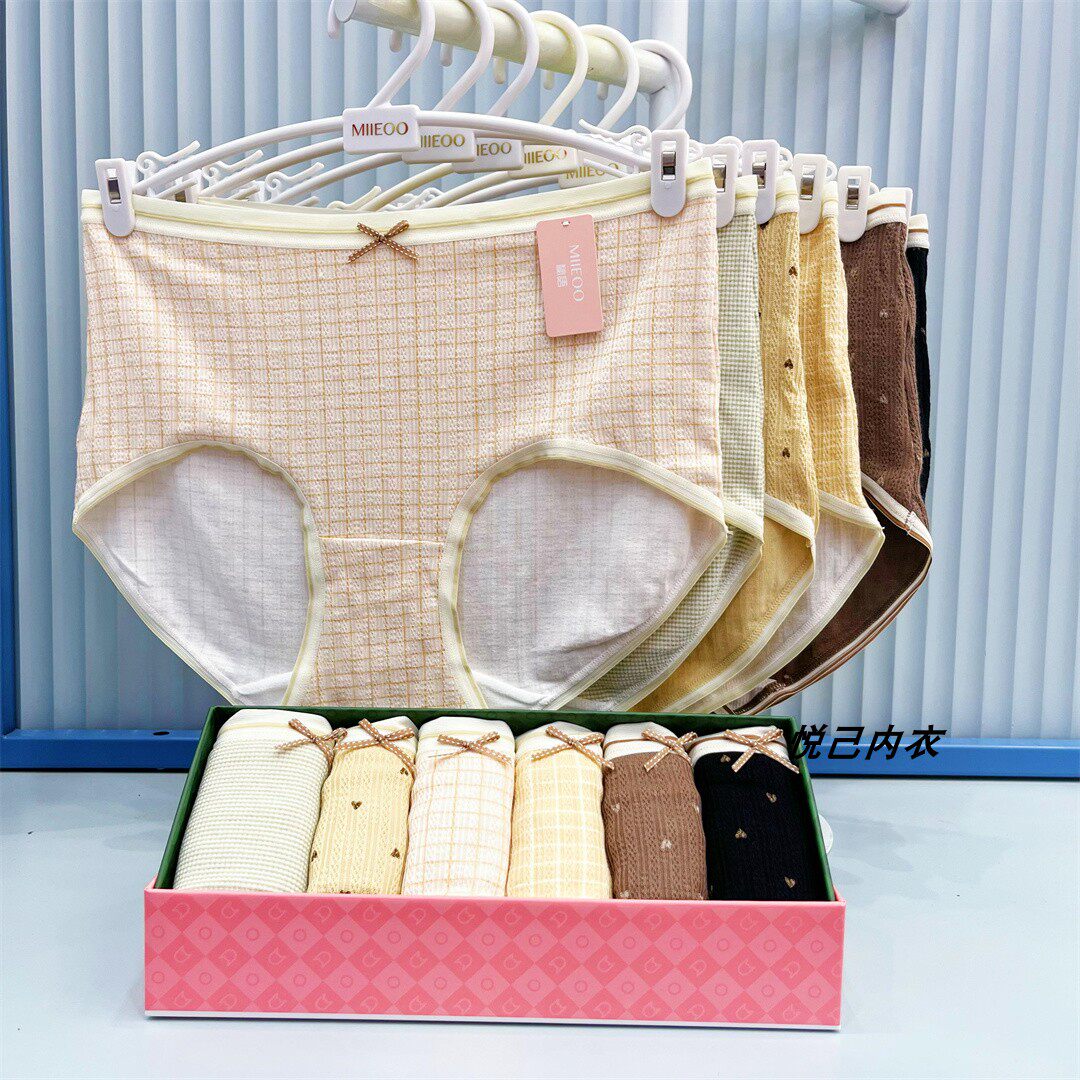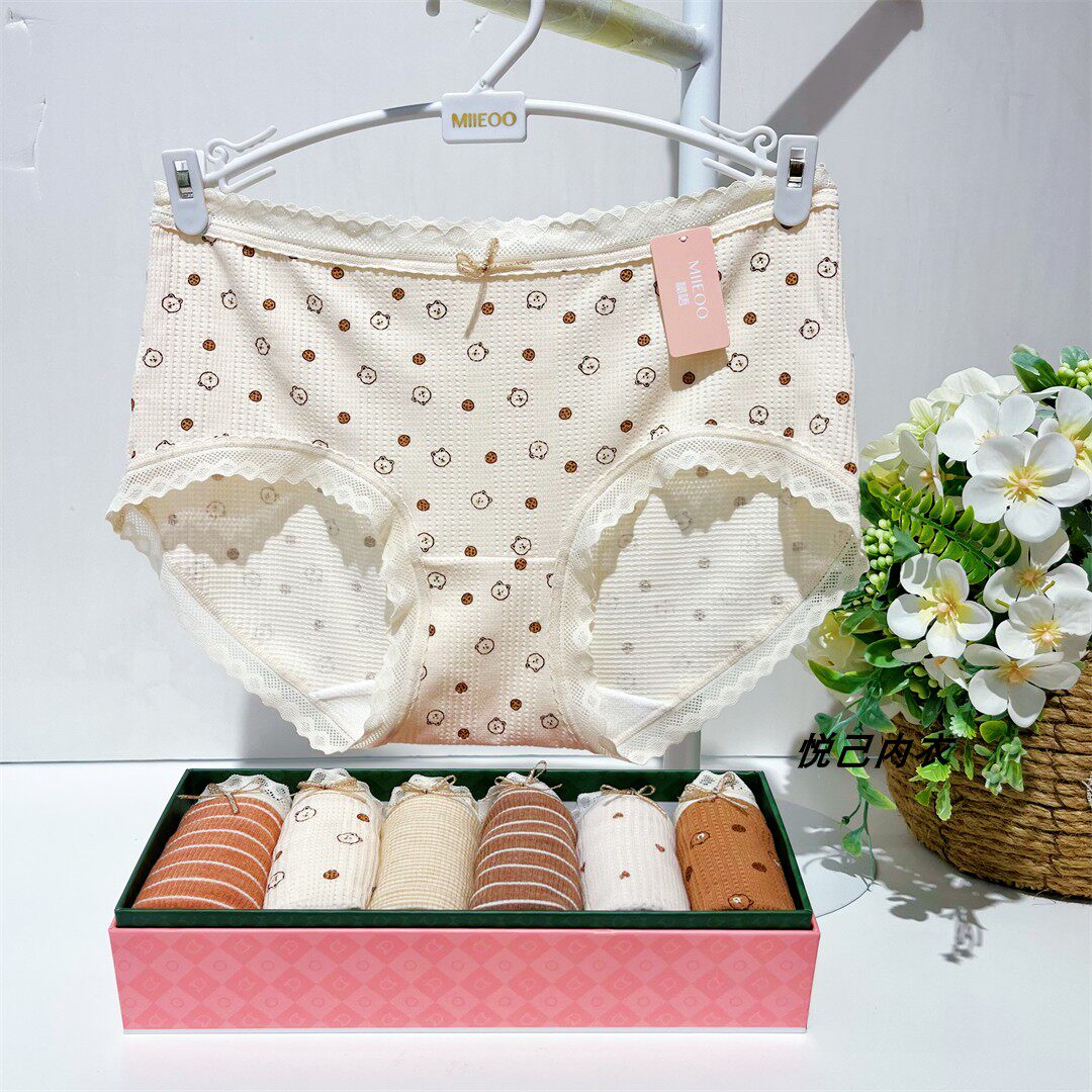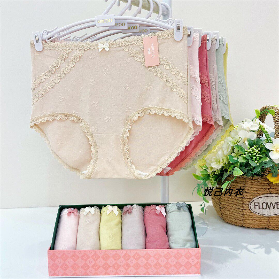 6条装秘语女士内裤莫代尔中腰高开叉蕾丝边舒适透气平角裤多款式