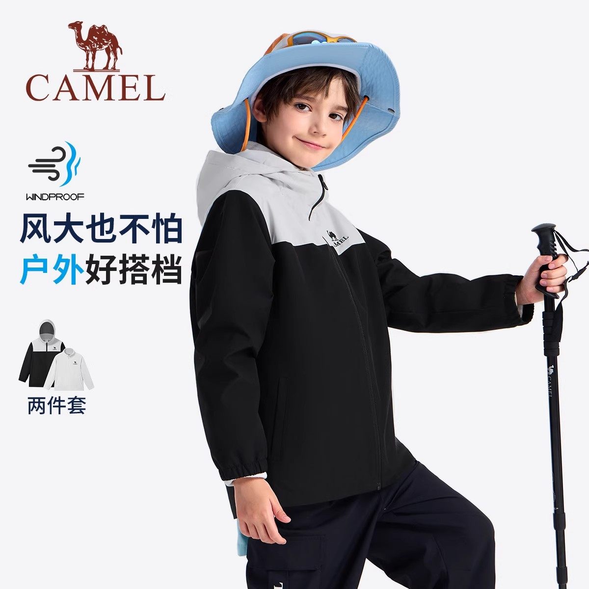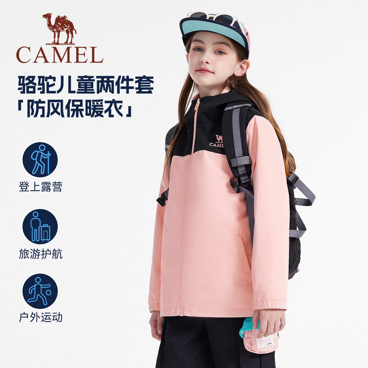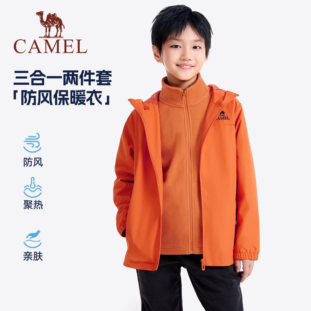 骆驼儿童三合一外套2025新款加绒中大童户外服男童女童保暖上衣