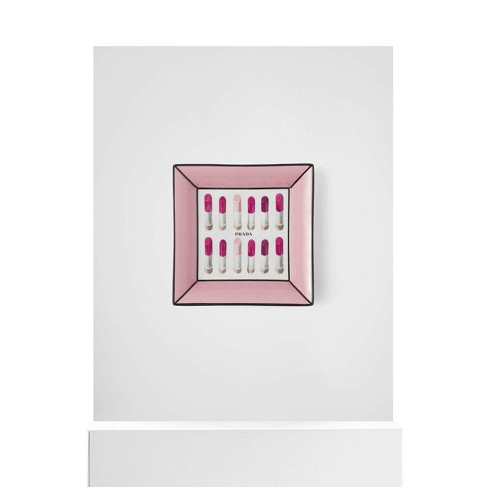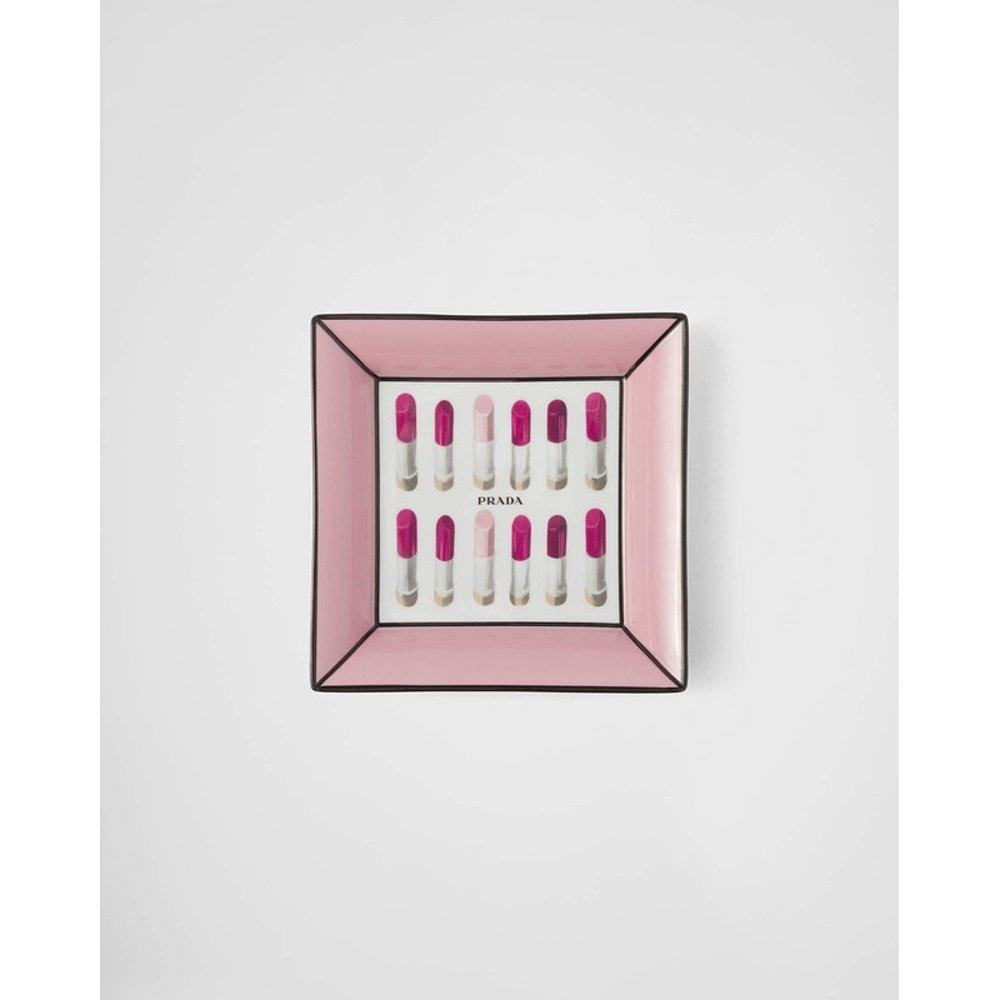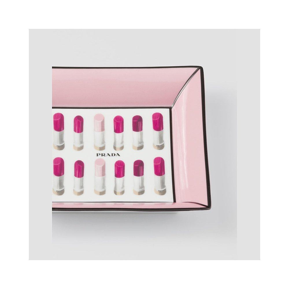 欧洲直邮Prada普拉达 白色/淡粉色瓷口红图案大号方形托盘瓷器