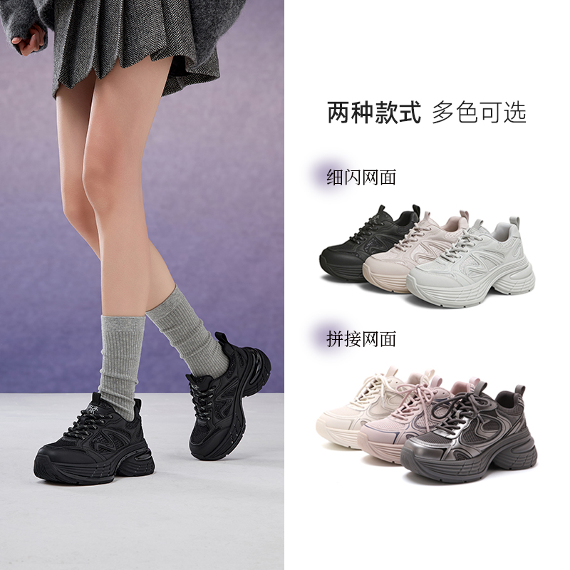 百思图2025春夏新款厚底高跟网面透气老爹鞋女运动休闲鞋A9166AM5
