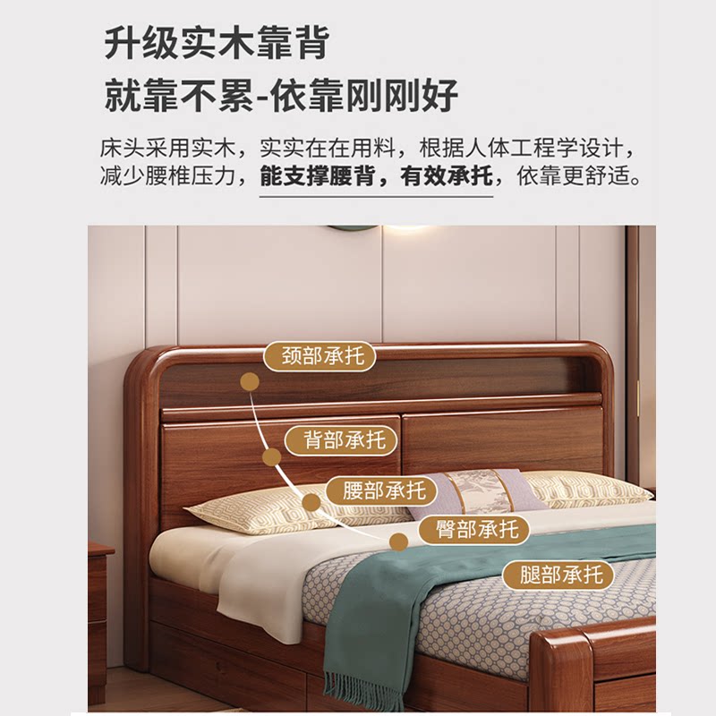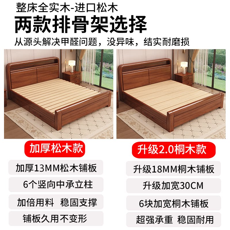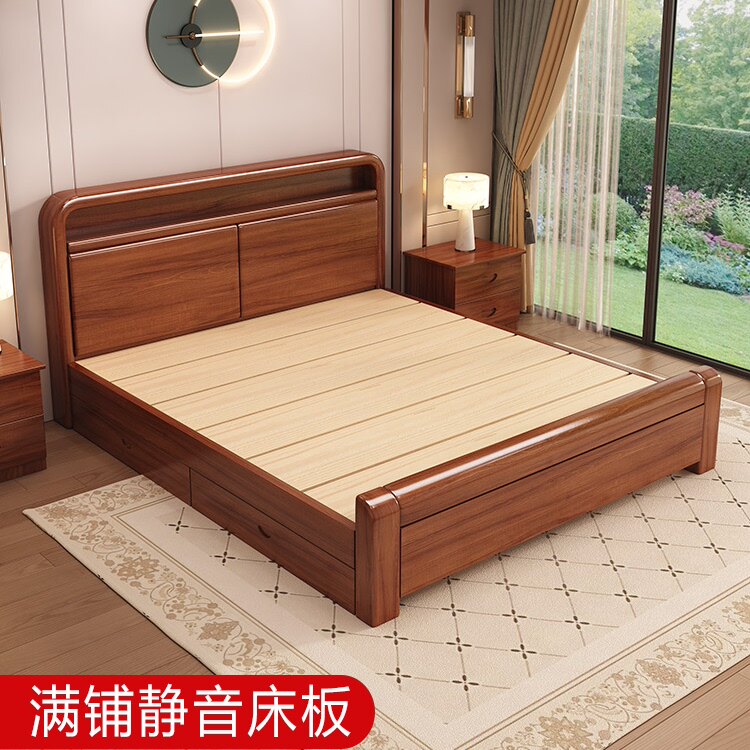实木床1.8米大床1.5米双人床1.2单人床中式简约风出租房家庭适用