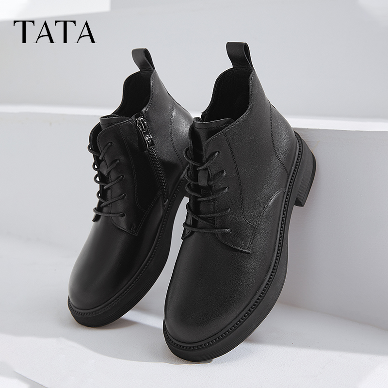 Tata他她英伦休闲马丁靴女款真皮白色短靴子冬季新款WXL02DD4