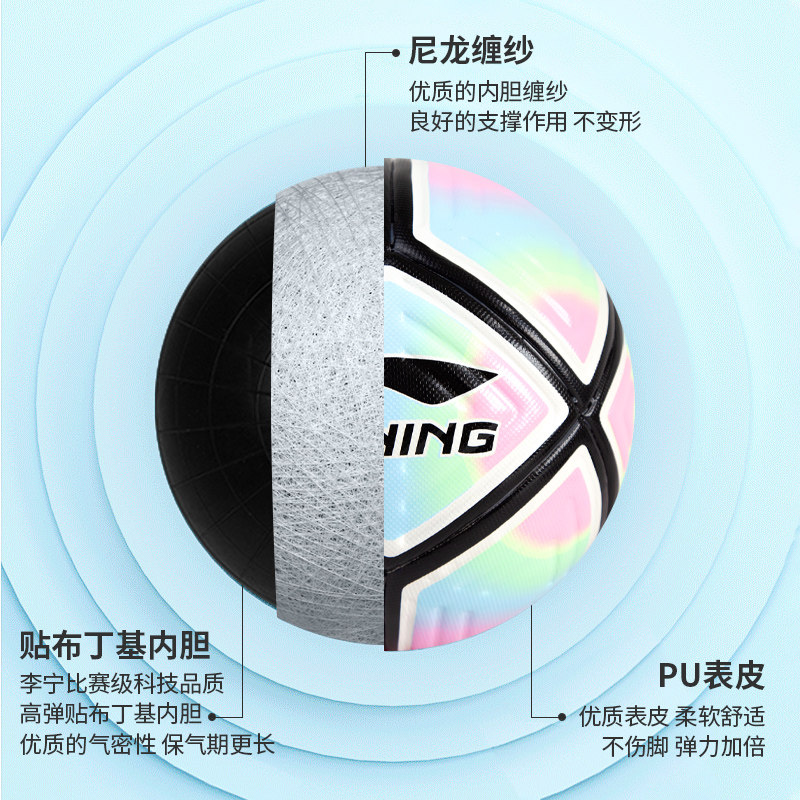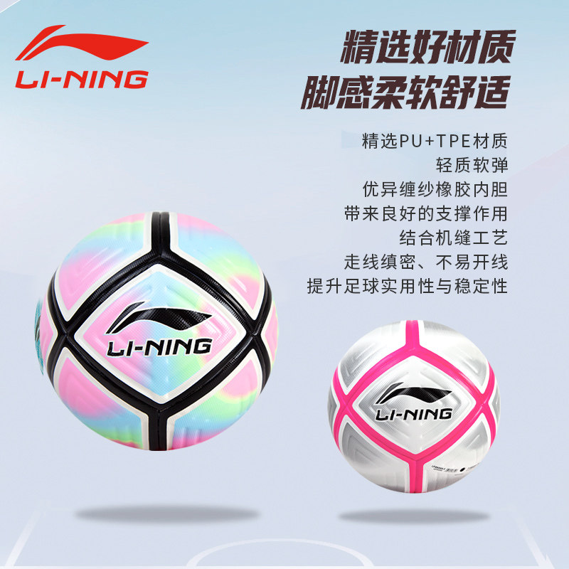 李宁足球5号球成人比赛初中生中考专用球青少年训练专业足球正品