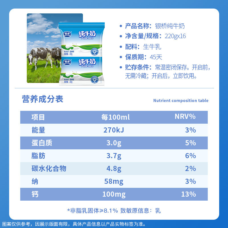 陕西银桥纯牛奶核桃花生红枣营养早餐奶220g*16袋整箱发