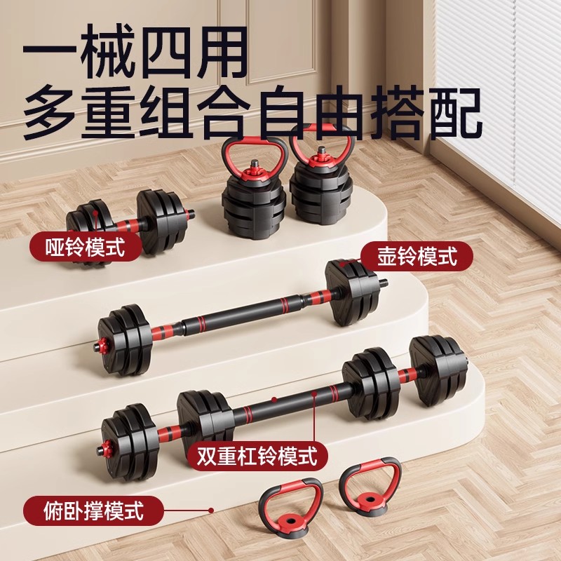 哑铃男士健身家用锻炼器材杠铃组合可调节壶铃男女士重量包胶套装