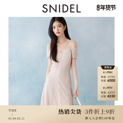 SNIDEL春夏款甜美V领吊带露肩短款收腰连衣裙SWCO252305