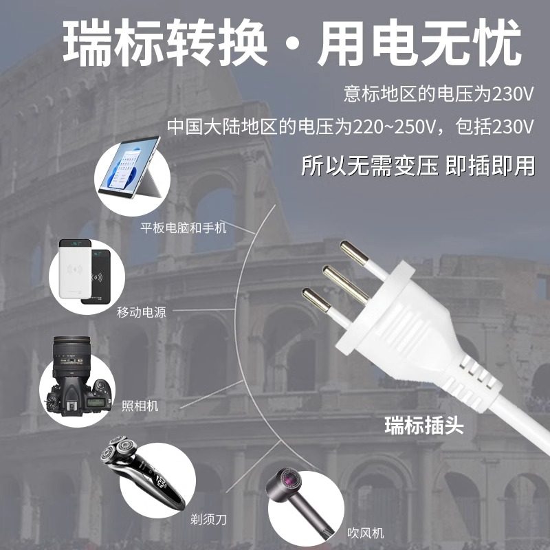 飞利浦瑞士转换插排瑞标插头插座转换器留学旅游插板带usb接线板