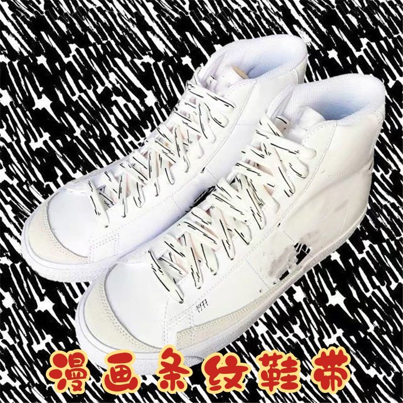 适配af1耐克blazer卡通涂鸦黑白红蓝线条aj1漫画开拓者二次元鞋带