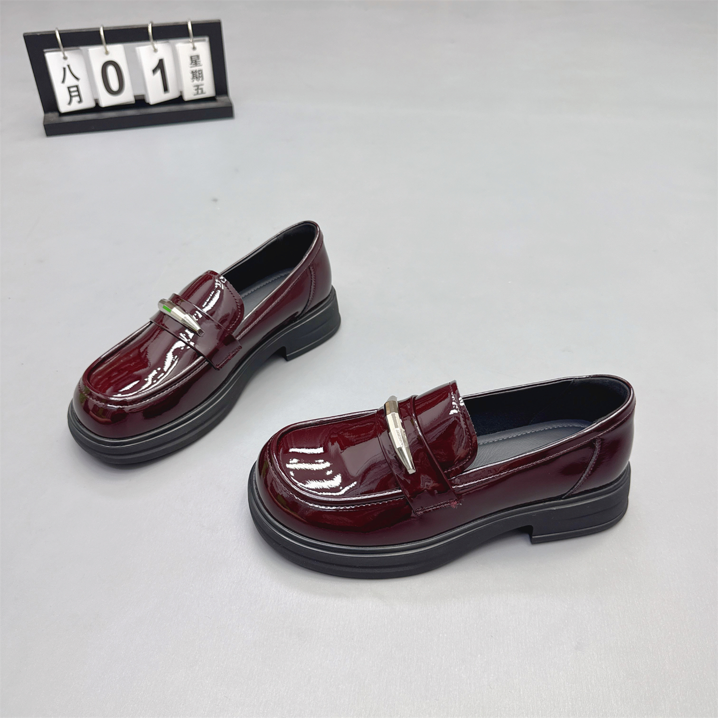 真皮女鞋2025秋季新款圆头粗跟英伦风小皮鞋一脚蹬漆皮单鞋乐福鞋