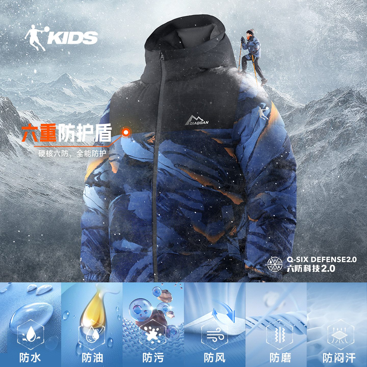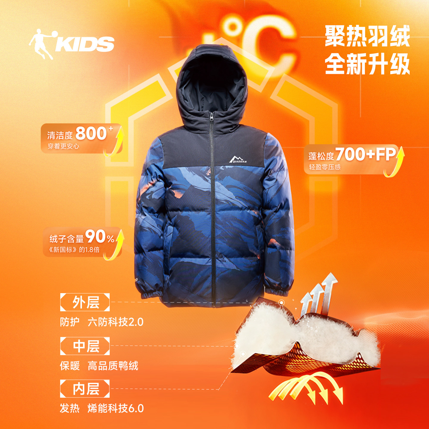 乔丹童装儿童聚热羽绒服男童外套2025冬季新款大童保暖加厚防寒服