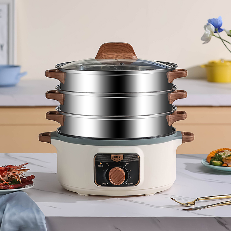 电蒸锅多功能家用火锅大容量三层电蒸笼定时多层蒸馒头智能蒸煮锅