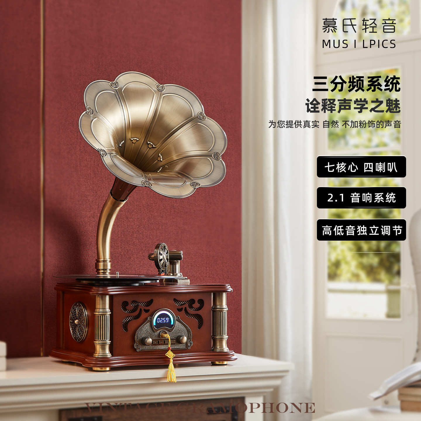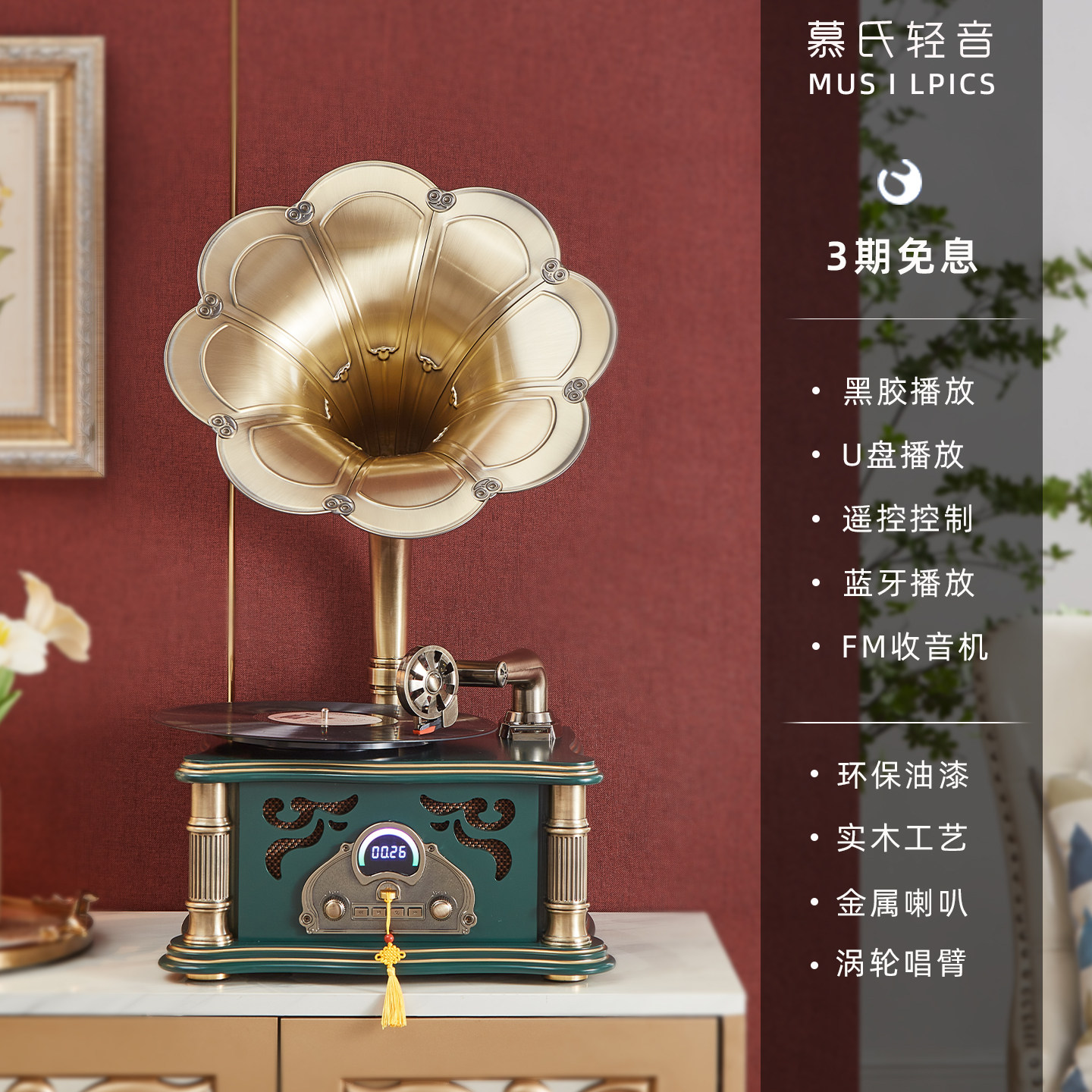 复古音响留声机家用客厅怀旧高端装饰摆件老款黑胶唱机老式唱片机