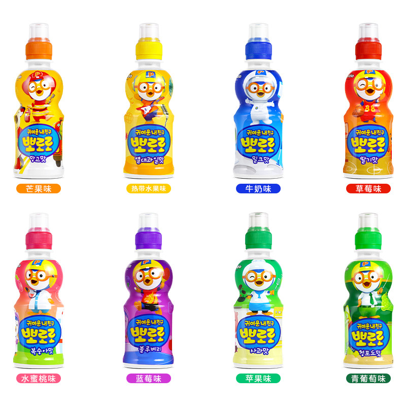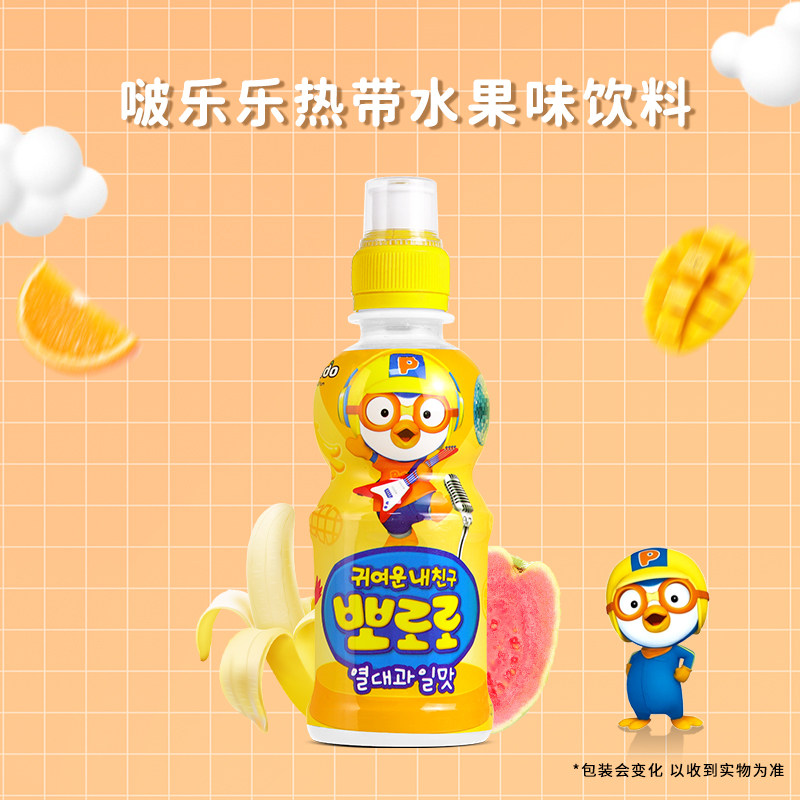 Pororo啵乐乐果味儿童饮料整箱235ml*24瓶吮吸瓶嘴 韩国进口清仓