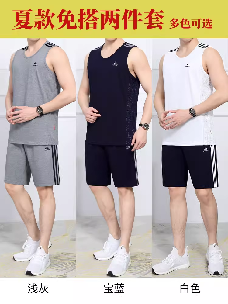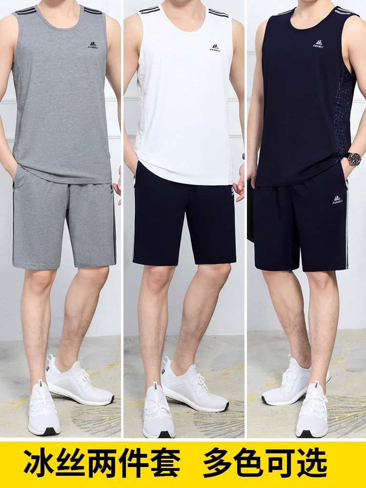 中老年背心短裤男士2025夏季新款冰丝运动套装宽松爸爸无袖篮球服