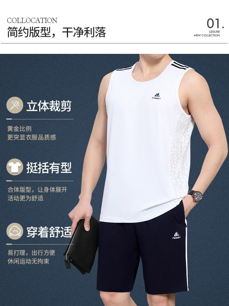 中老年男士短裤背心外穿夏季