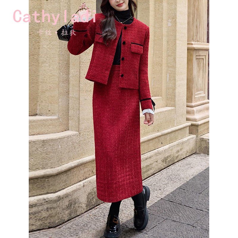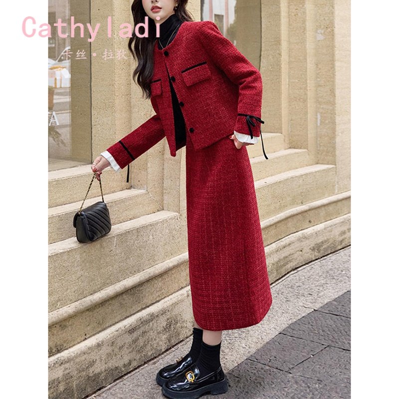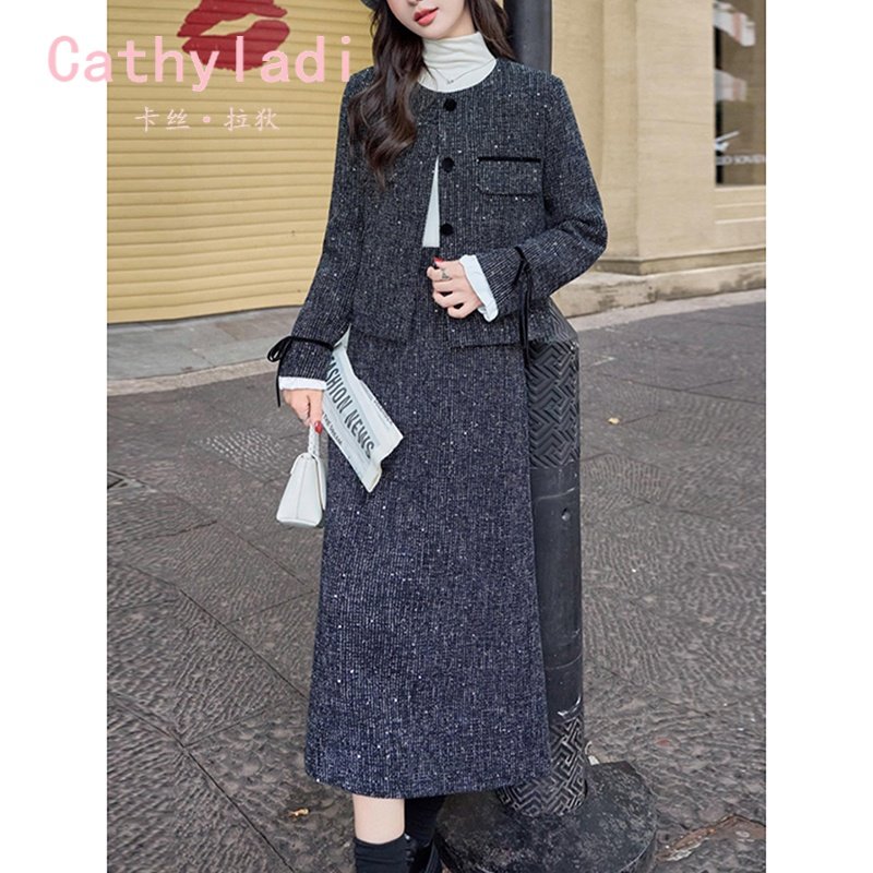 CATHYLADI轻奢高级感毛呢套装裙秋冬季新款优雅小香风显瘦两件套