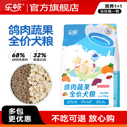 乐顿乳鸽果蔬全价冻干犬粮幼犬成犬泰迪比熊柯基金毛通用狗粮2kg