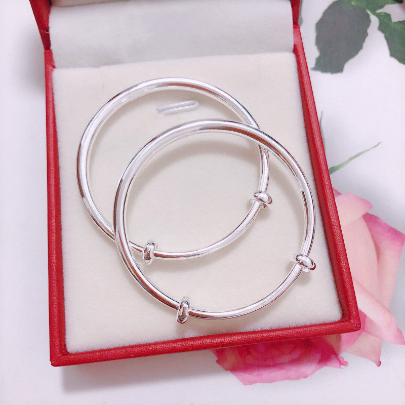 福凤茗纯银宝宝银镯子9999银手镯婴儿童男女小孩满月银饰百日周岁