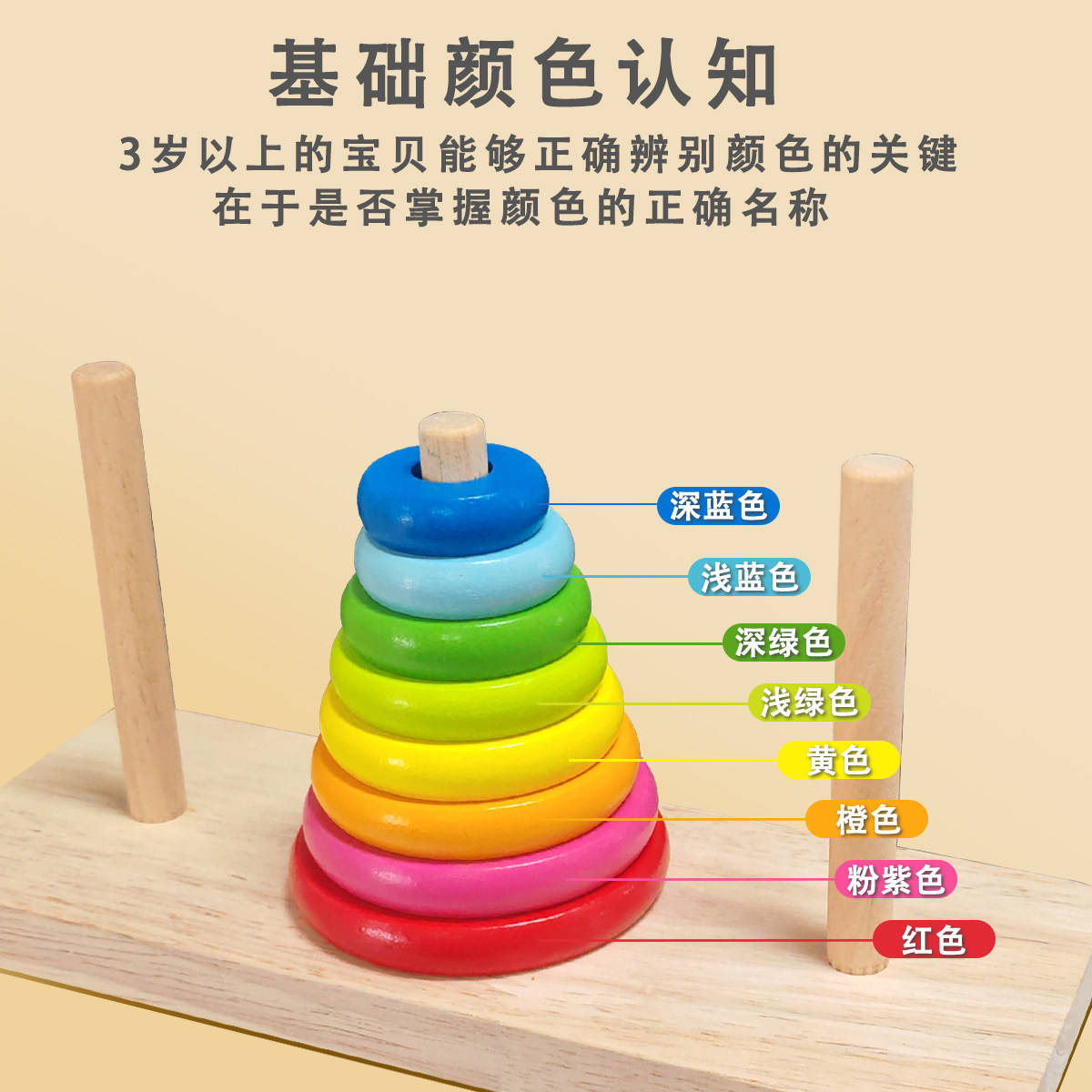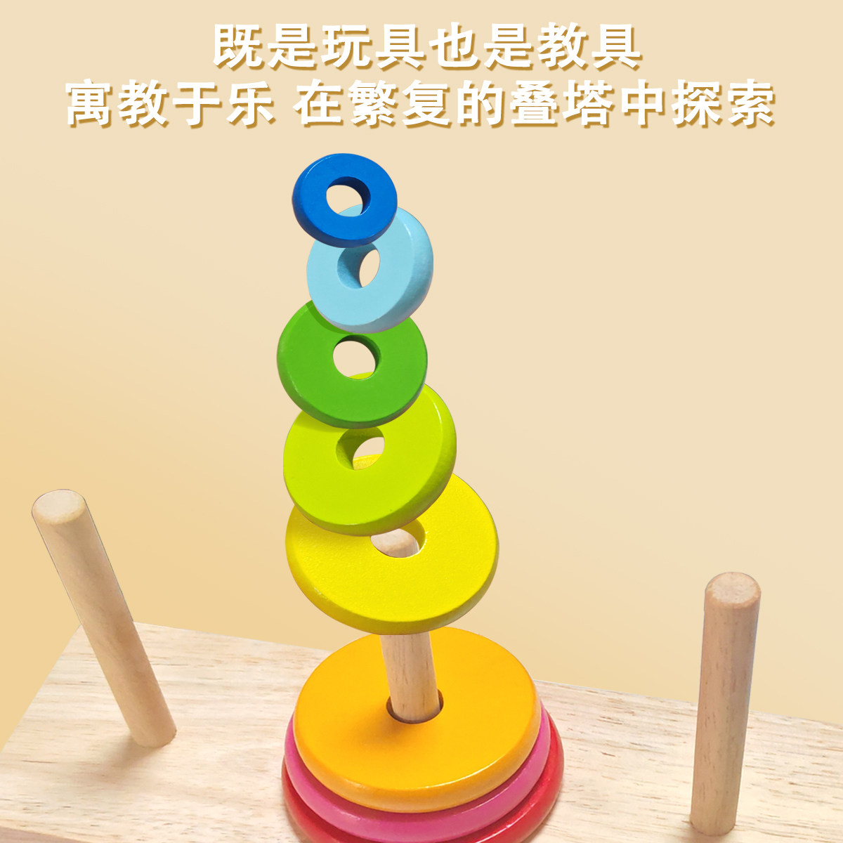 蒙氏早教教具汉诺塔彩虹塔叠叠乐儿童套圈配对比赛专用智力玩具