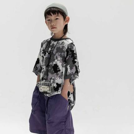 56852木家短袖T恤衫童装夏款男女童迷彩体恤中大童