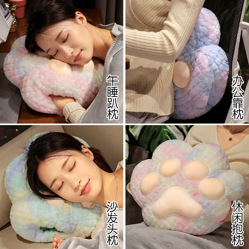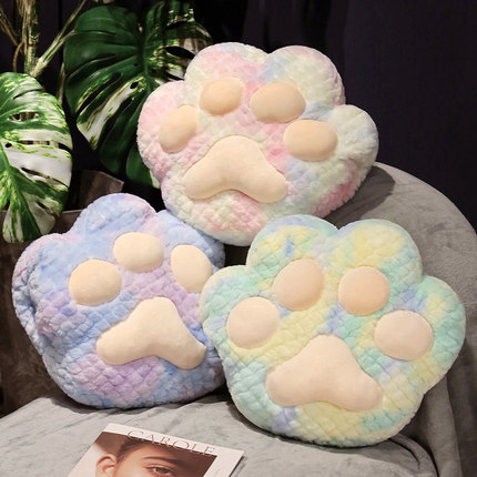冬季猫爪暖手抱枕可插手扎染毛绒玩具公仔熊掌手捂玩偶礼物女生