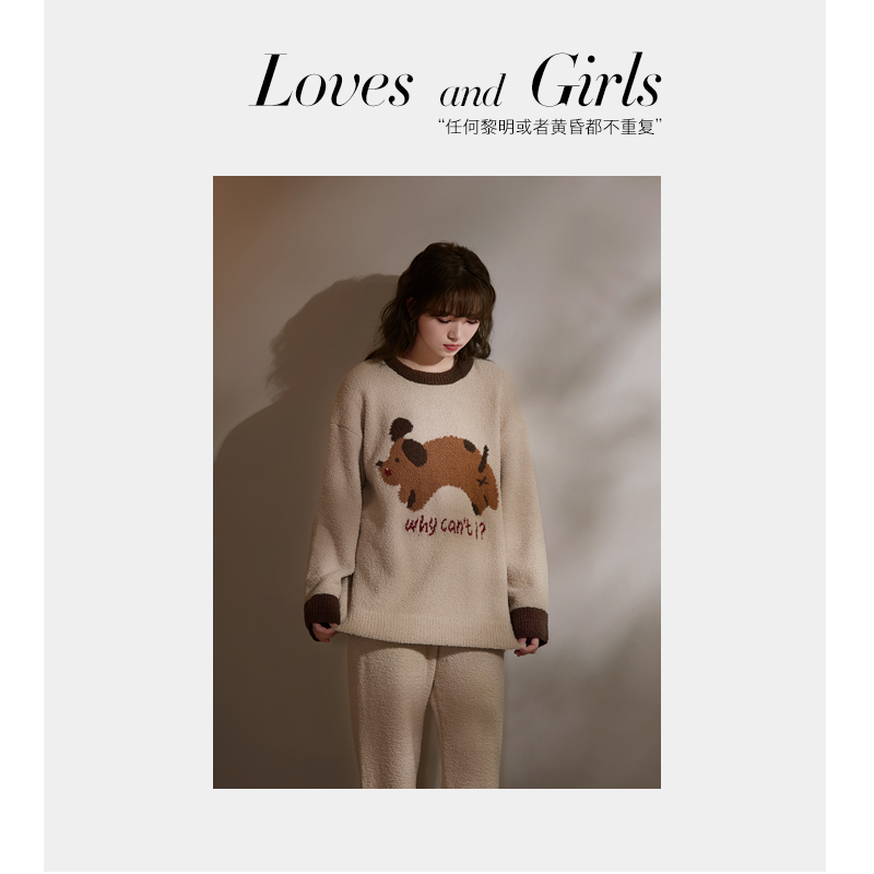 思莉太太半边绒睡衣女秋冬加厚加绒冬天可爱小狗毛绒冬季家居服
