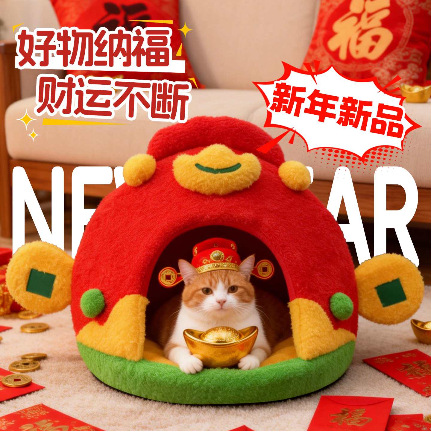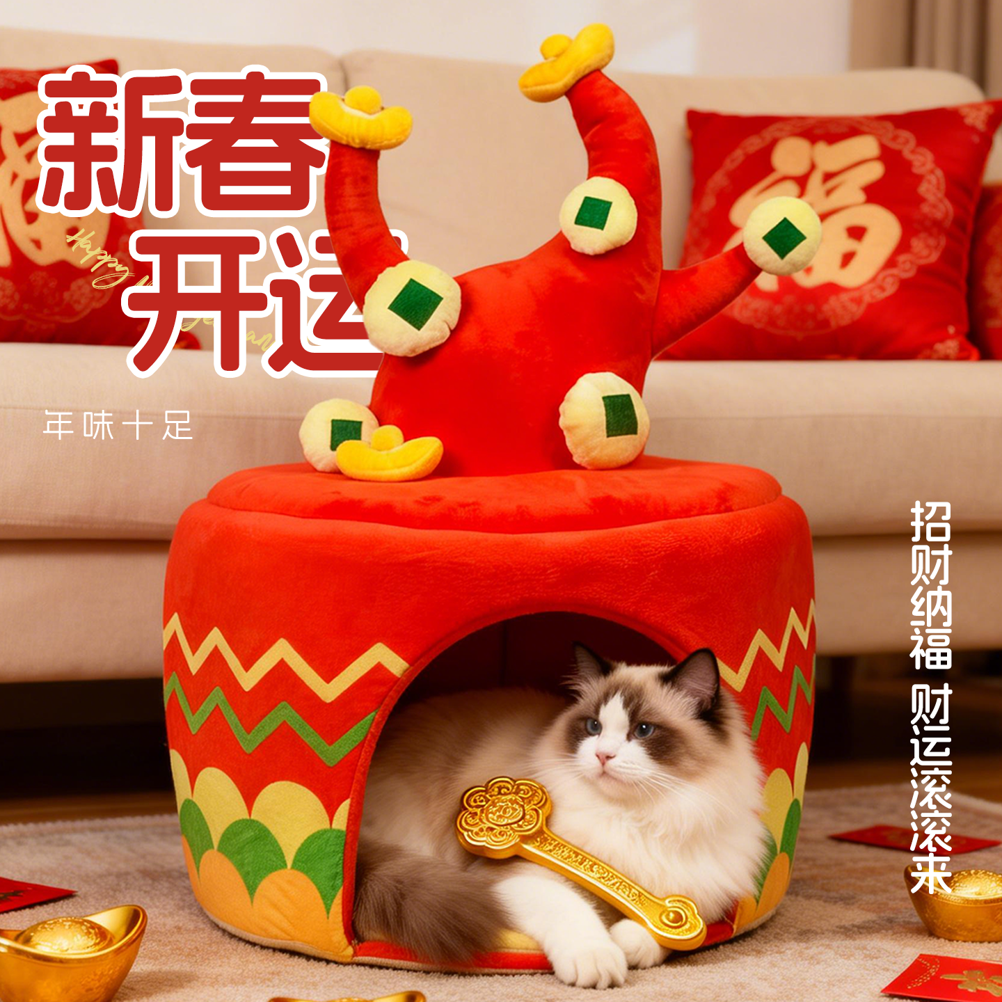 咖家财神猫窝新年冬季2026新款宠物蒙古包猫咪睡窝加厚保暖半封闭