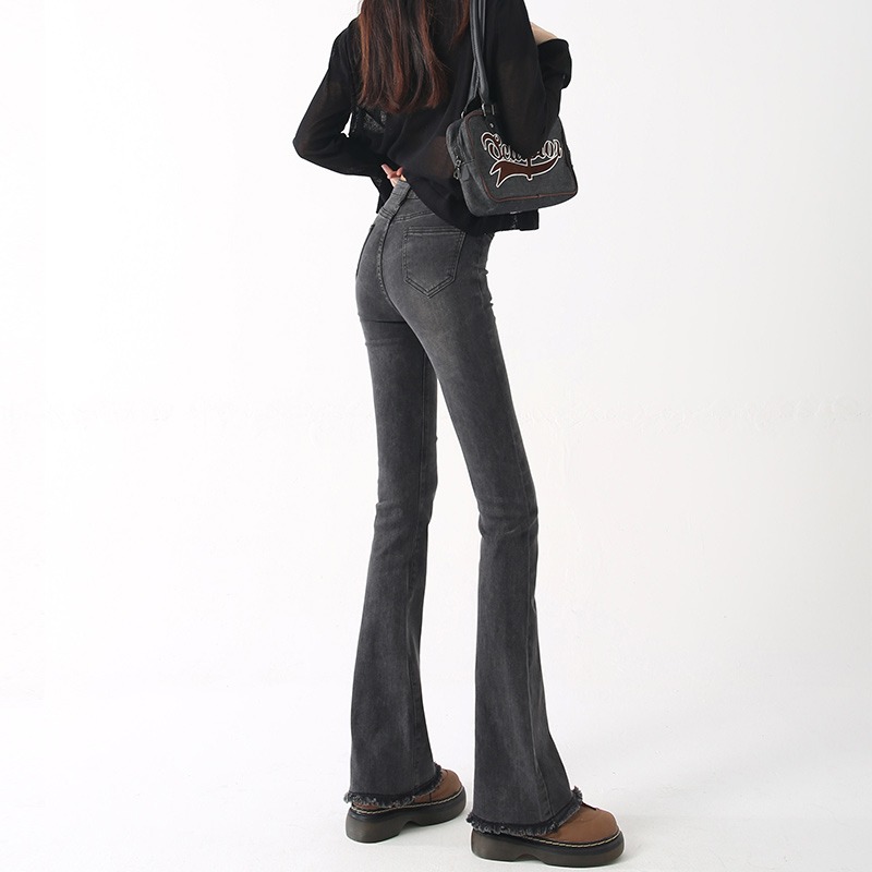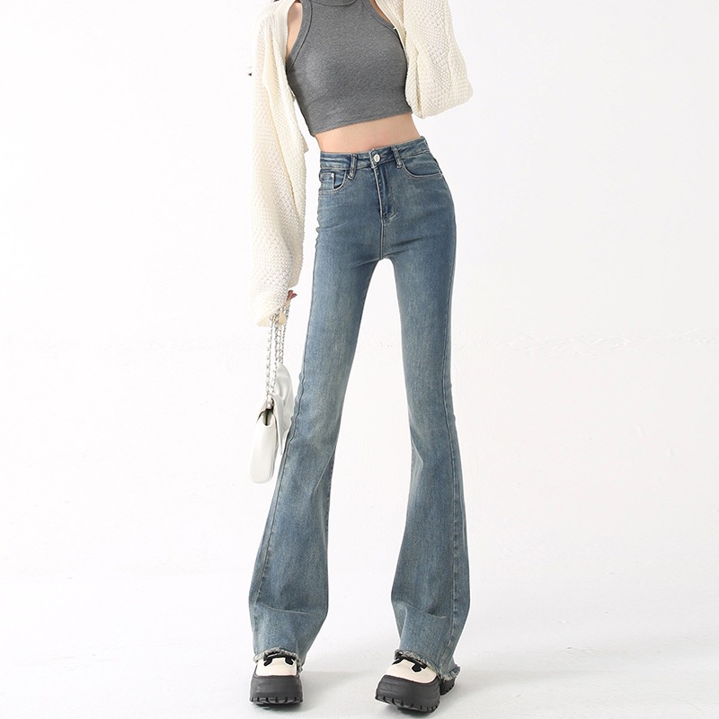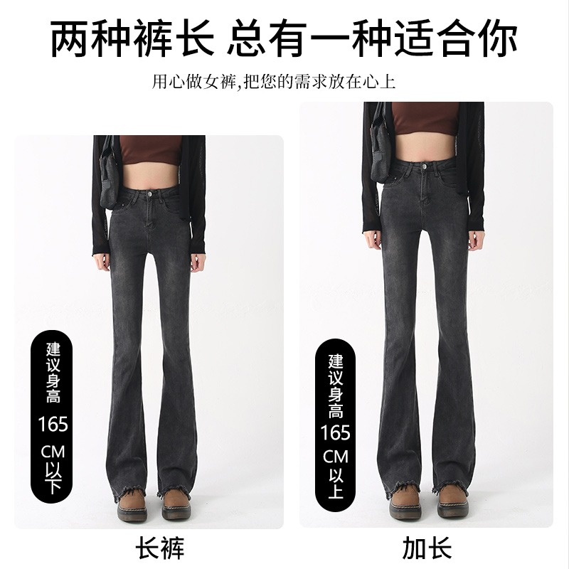 高腰微喇叭牛仔裤女2023年新款春秋小个子弹力修身显瘦毛边马蹄裤