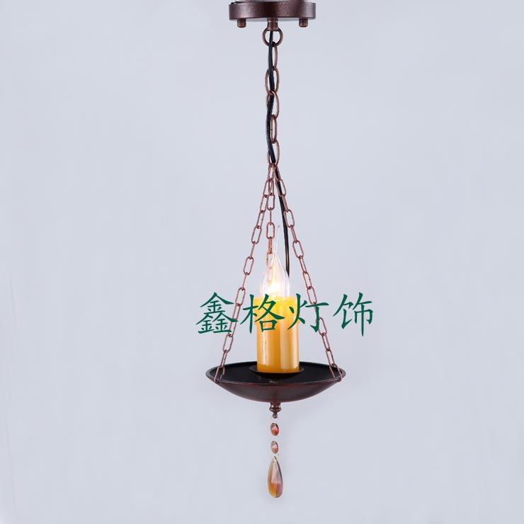 欧式复古铁艺单头美式乡村吊灯仿古阳台灯过道灯个性创意酒吧灯具