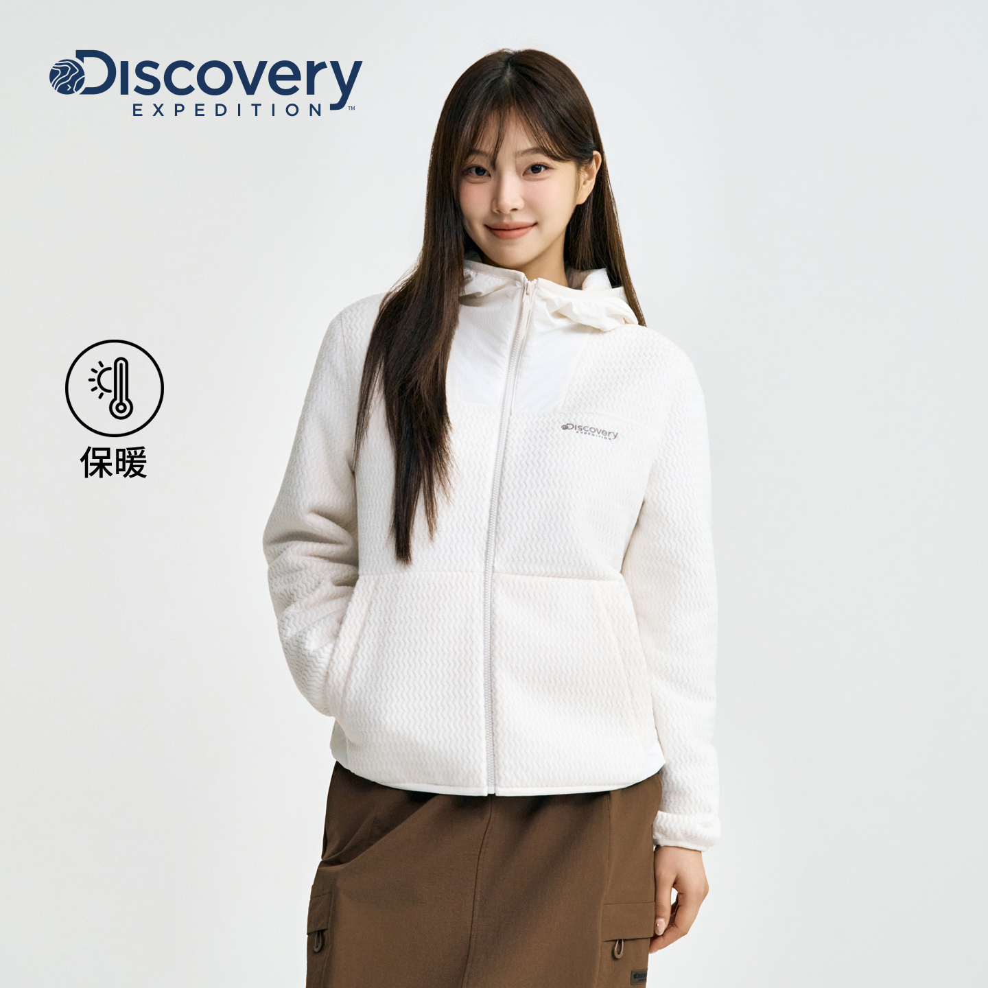 Discovery探索户外徒步保暖抓绒外套拼接连帽运动卫衣女25秋冬新