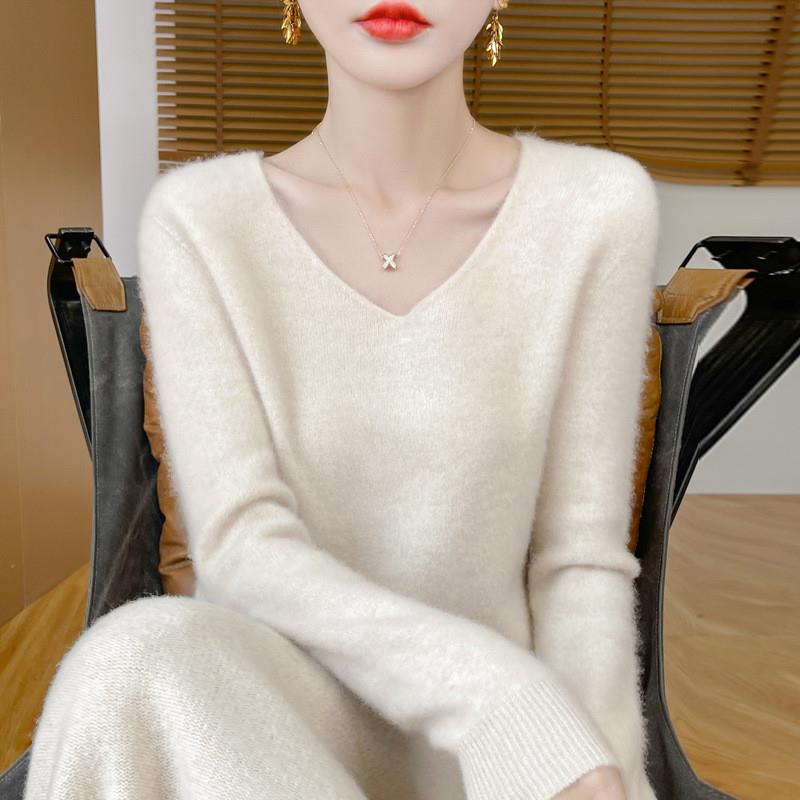 秋冬羊毛衫套头2025上衣宽松长袖打底服饰V领毛衣女新款针织衫女
