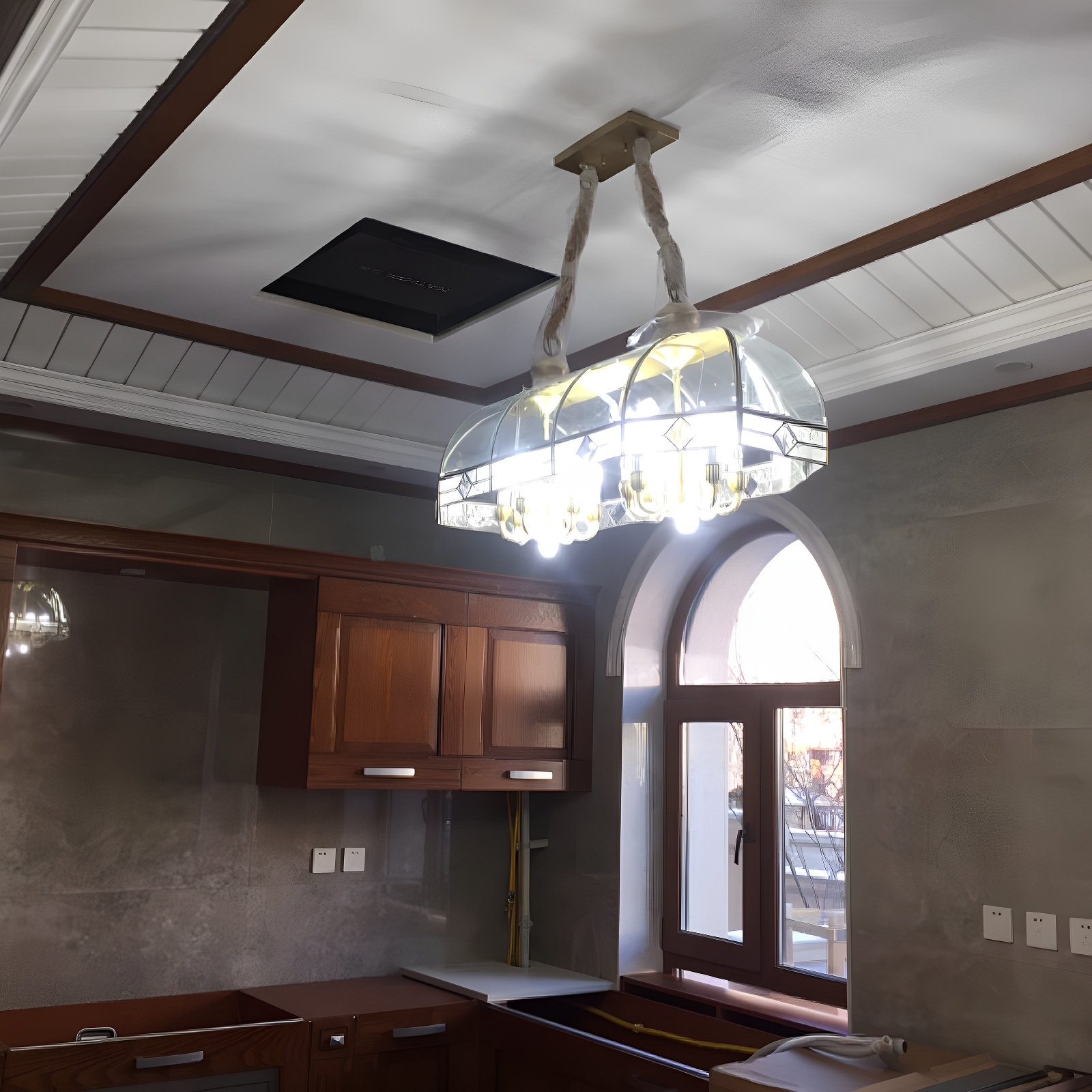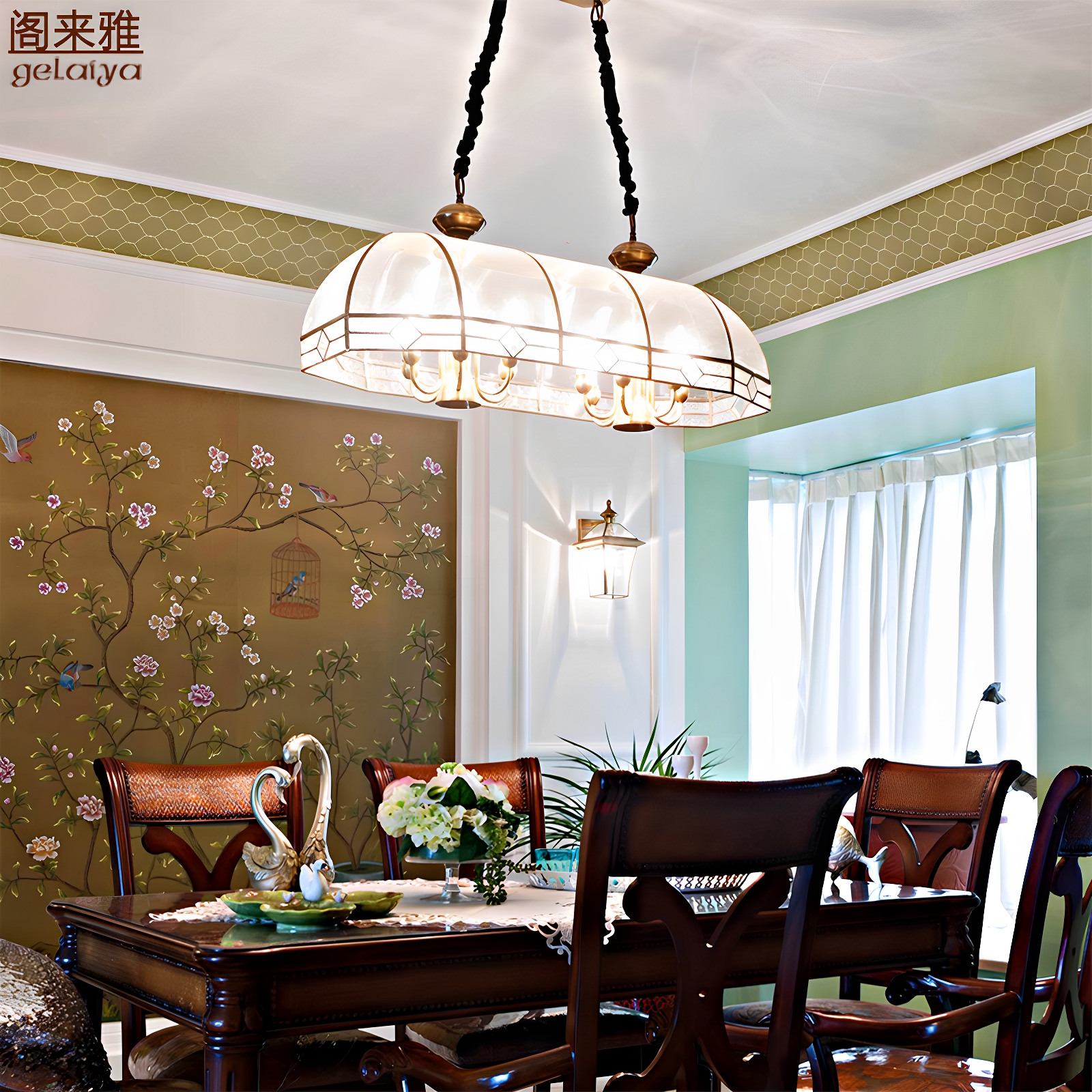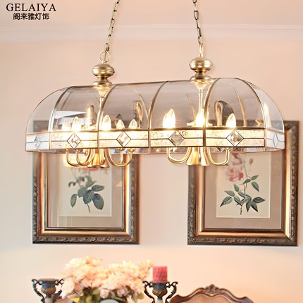 美式餐厅吊灯现代简约欧式厨房吧台灯长方形灯茶室会所复古全铜灯