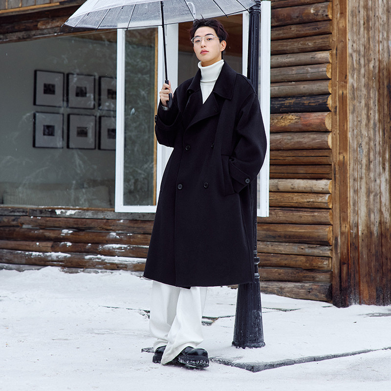 PSO Brand男装女装双面羊毛毛呢外套中长款宽松呢子大衣女款冬季