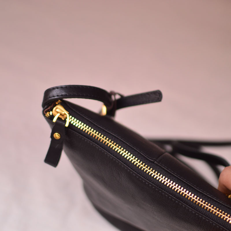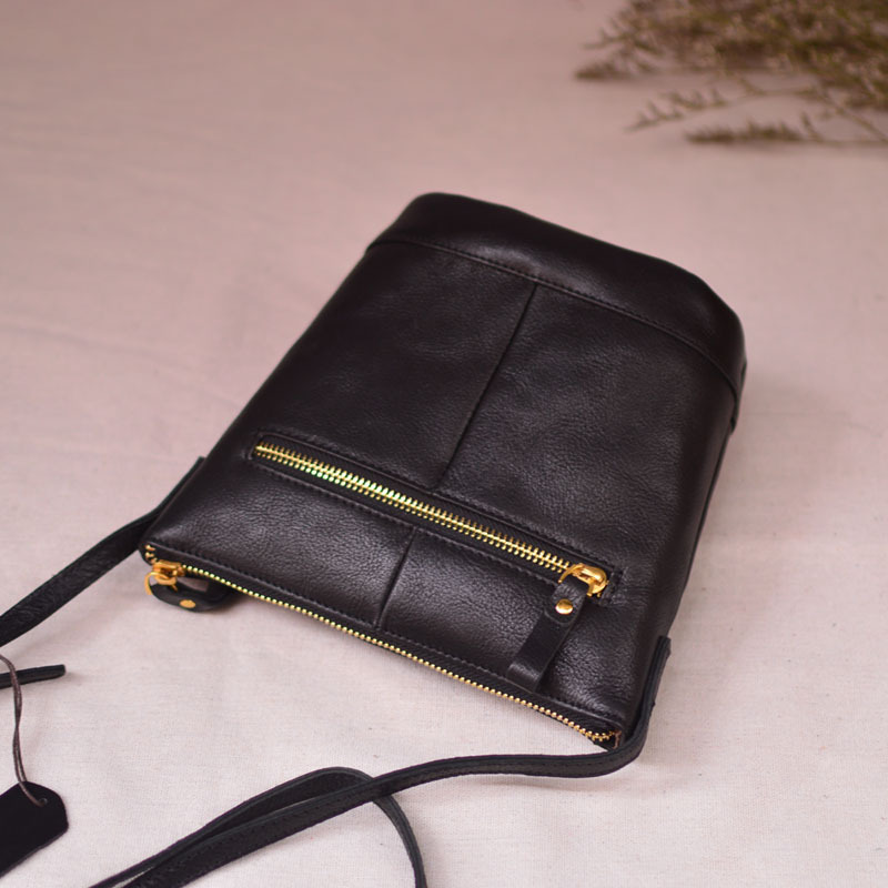 复古真皮水桶包斜挎头层软牛皮拉链手机包个性百搭便携收纳中性风