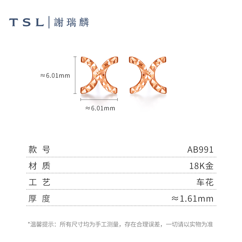 TSL谢瑞麟18K玫瑰金耳环