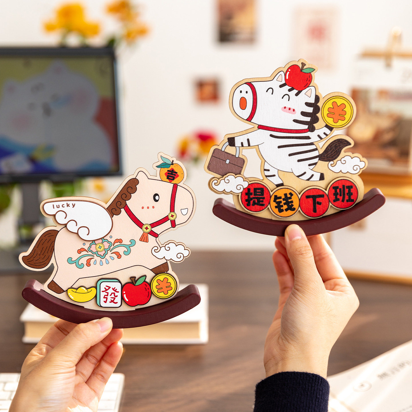 可爱摇摇马工位招财摆件祝福礼物
