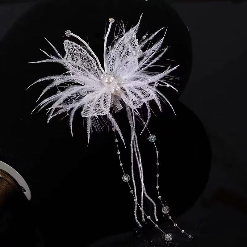 温柔香风!超仙羽毛蝴蝶流苏发夹