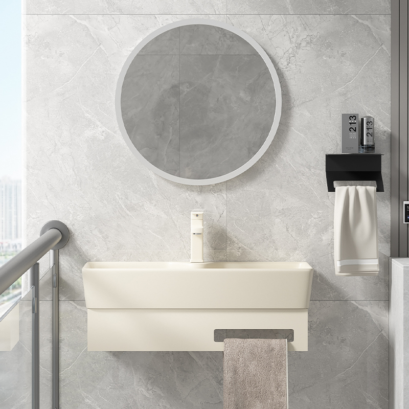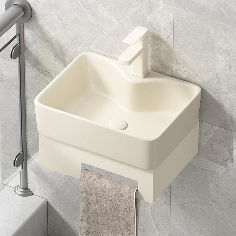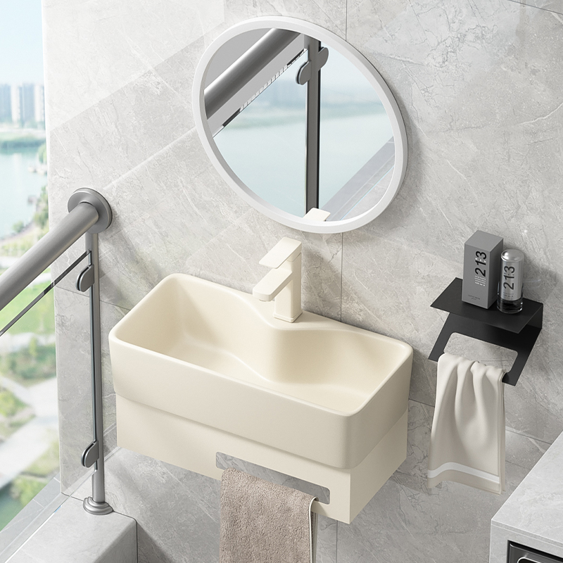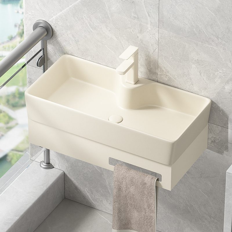 阳台奶黄挂墙式不锈钢支架奶油风陶瓷洗脸面盆小户型卫生间壁挂池