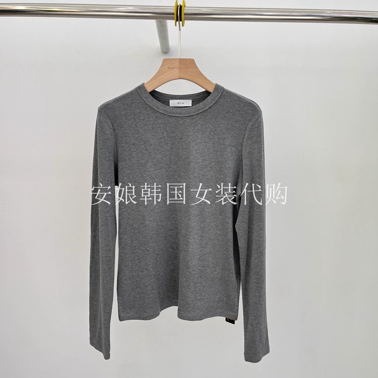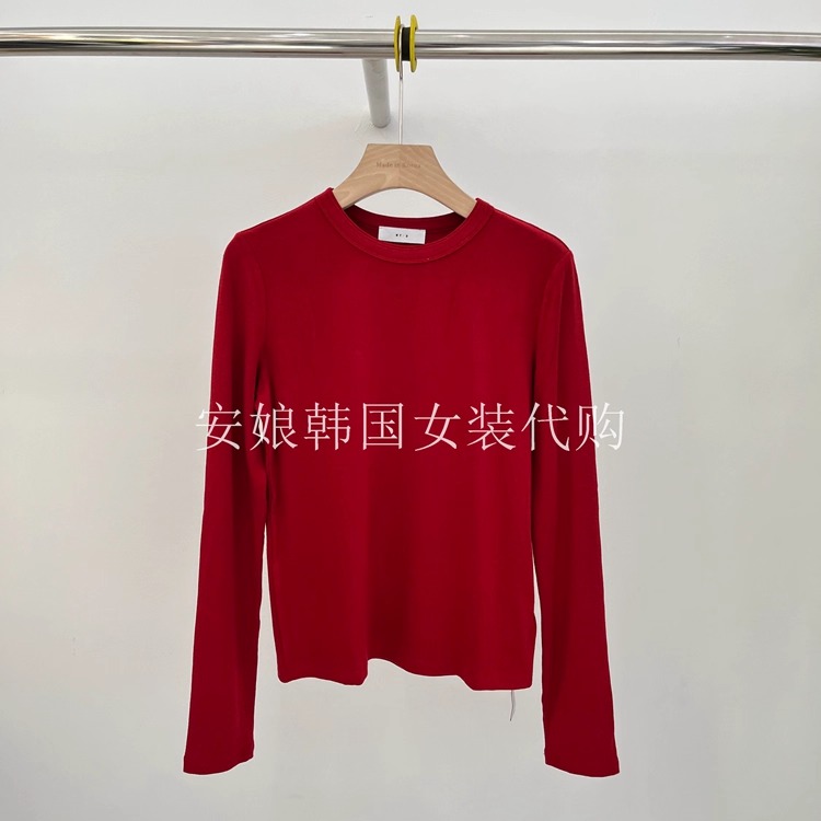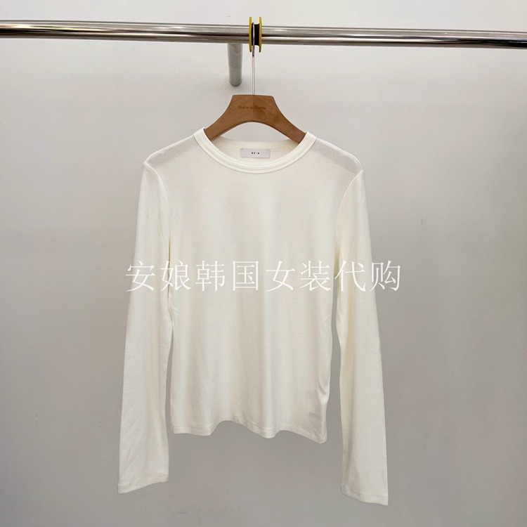安娘韩国女装代购2025秋季新款时尚圆领净色简约打底长袖T恤89388