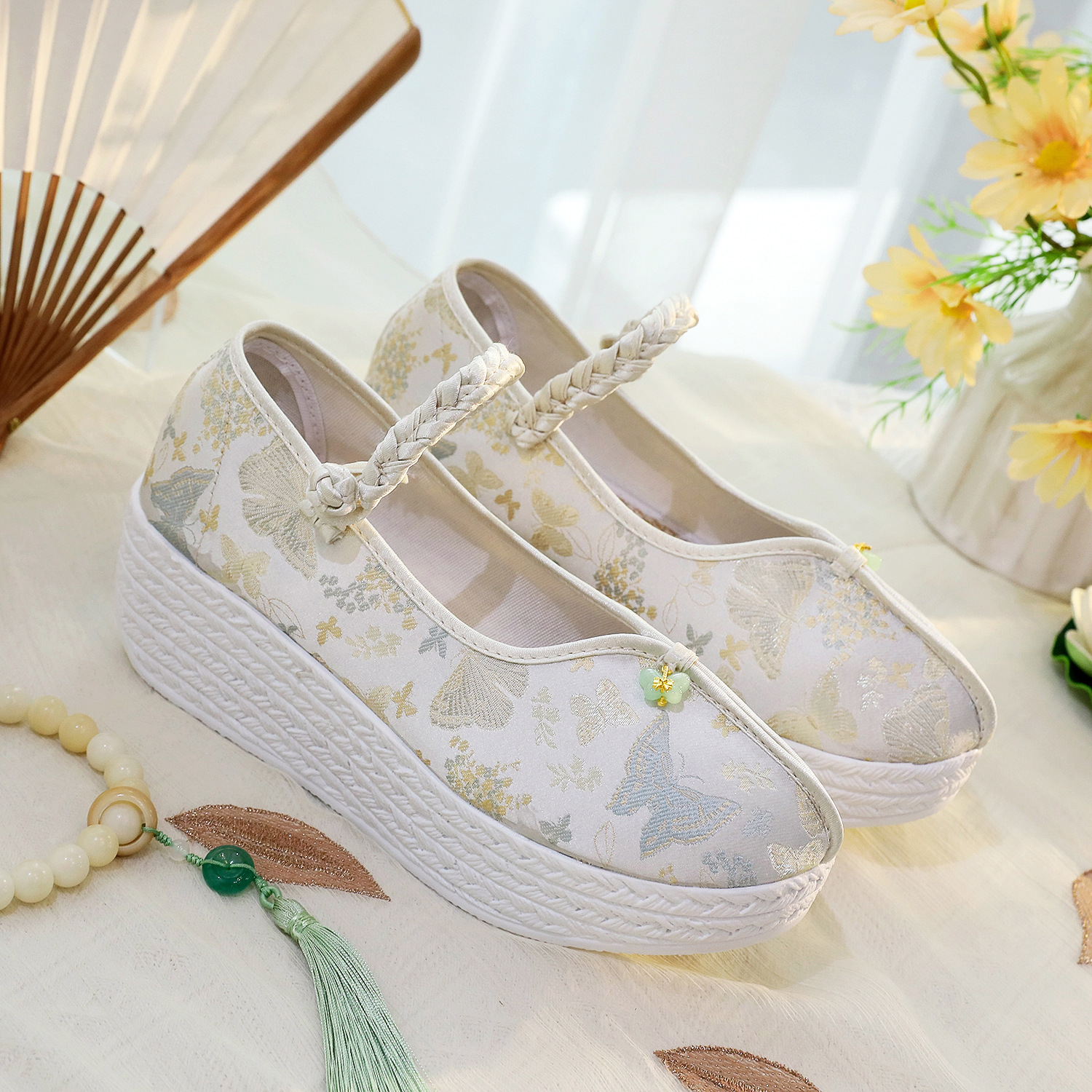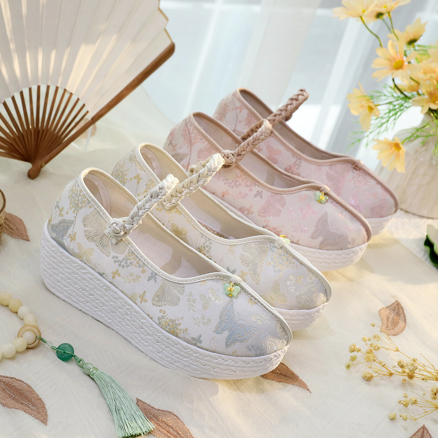 春夏新款绣花鞋轻便厚底增高民族风布鞋女蝴蝶高跟鞋老北京布鞋女