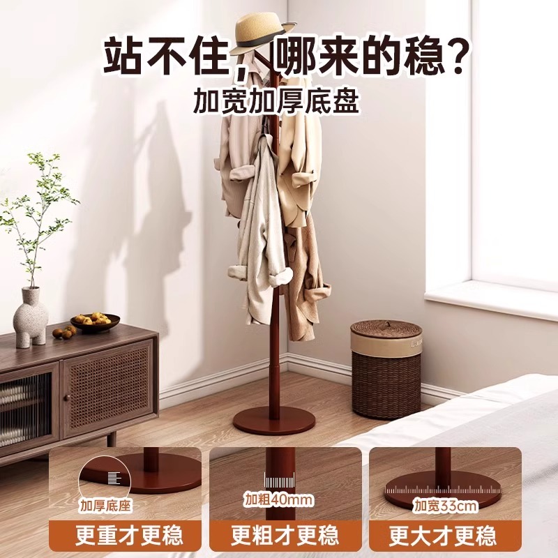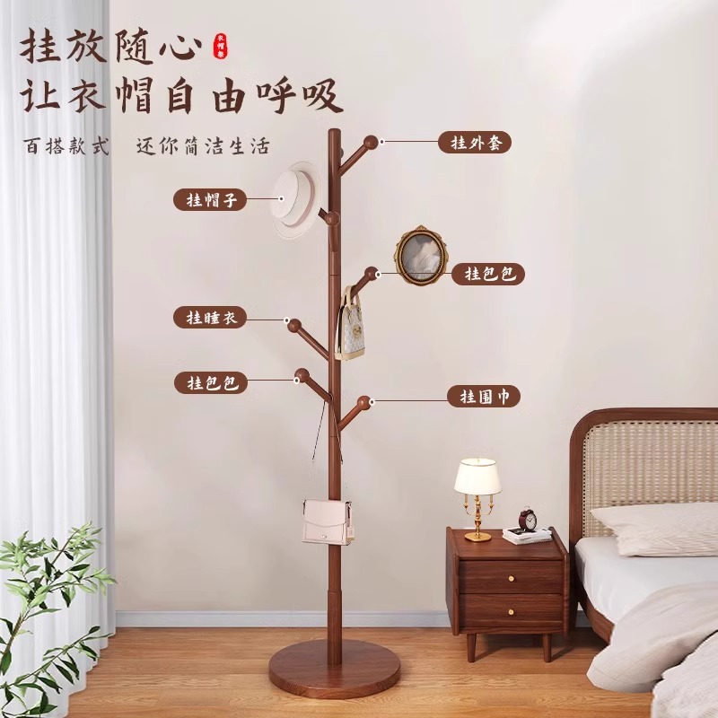 实木衣帽架挂衣架落地卧室床边家用立式宿舍简易收纳挂包架衣服杆