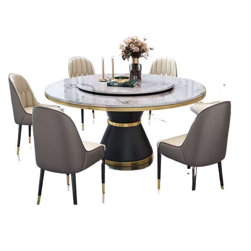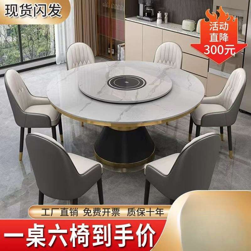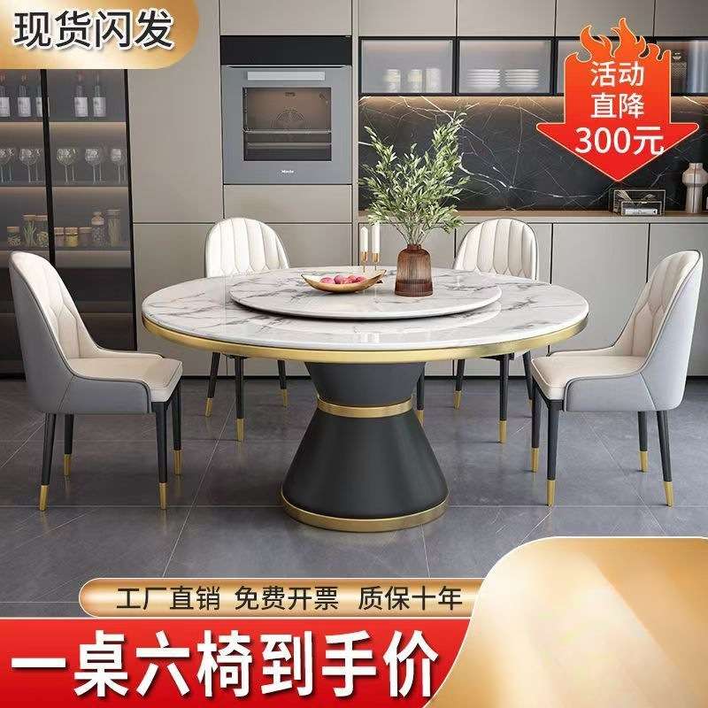 客厅岩板餐桌椅组合现代简约吃饭桌子轻奢大理石家用圆桌子带转盘