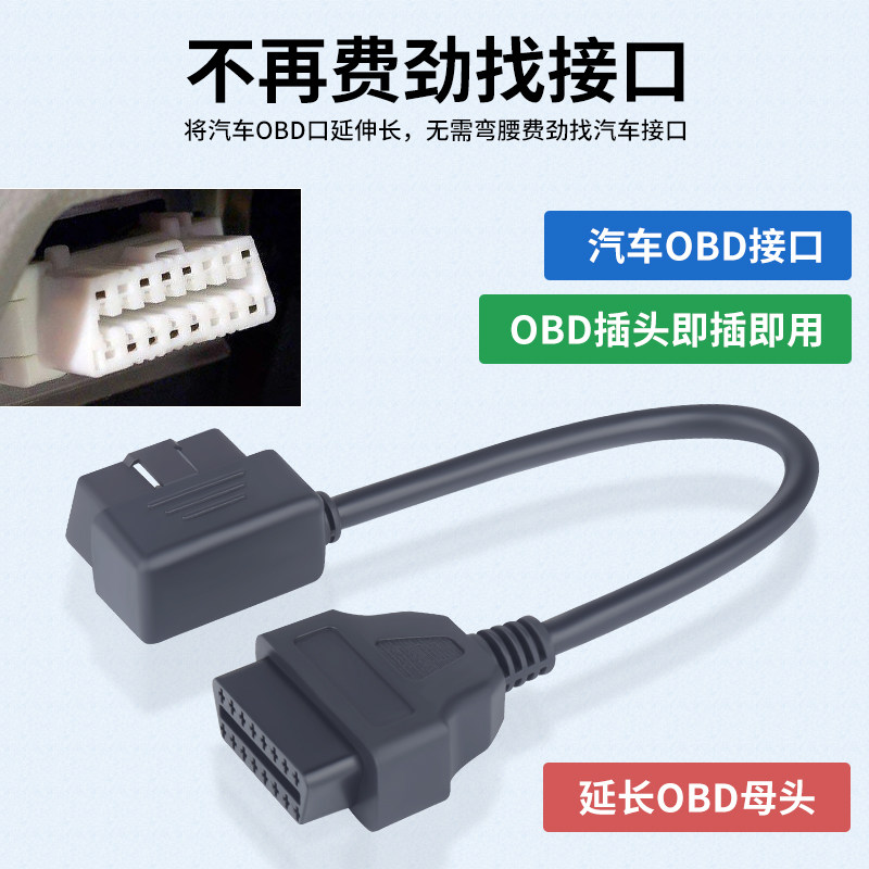 汽车检测仪OBD2延长线车载电脑X431连接线转换插头公对母转接线