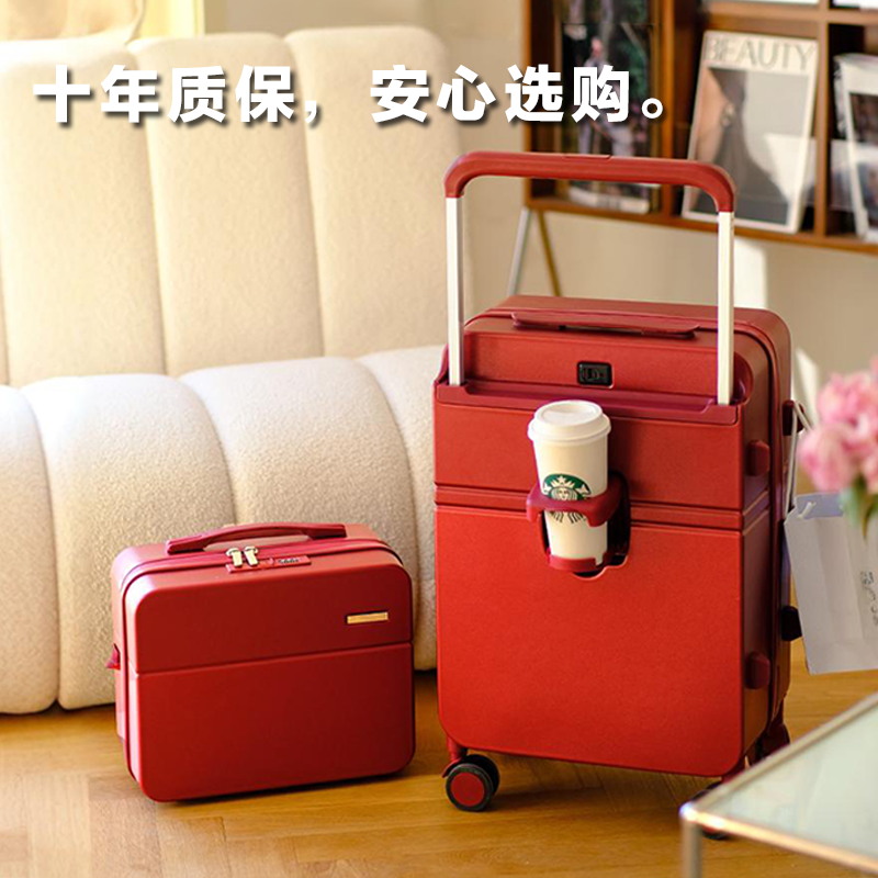 宽拉杆酒红色行李箱结婚陪嫁子母箱2024新款女高颜值多功能密码箱