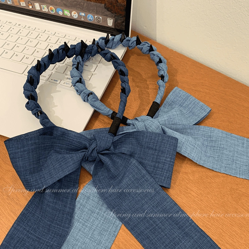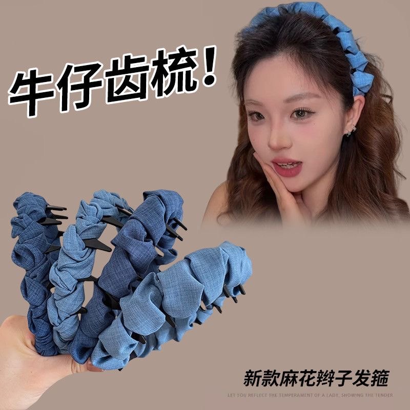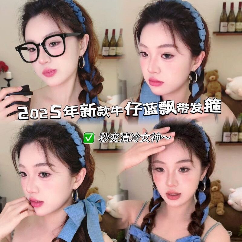 新款夏日清凉感麻花结甜辣少女全扎齿梳飘带发箍百搭牛仔飘带发带