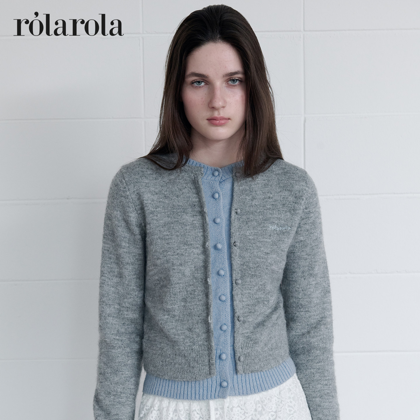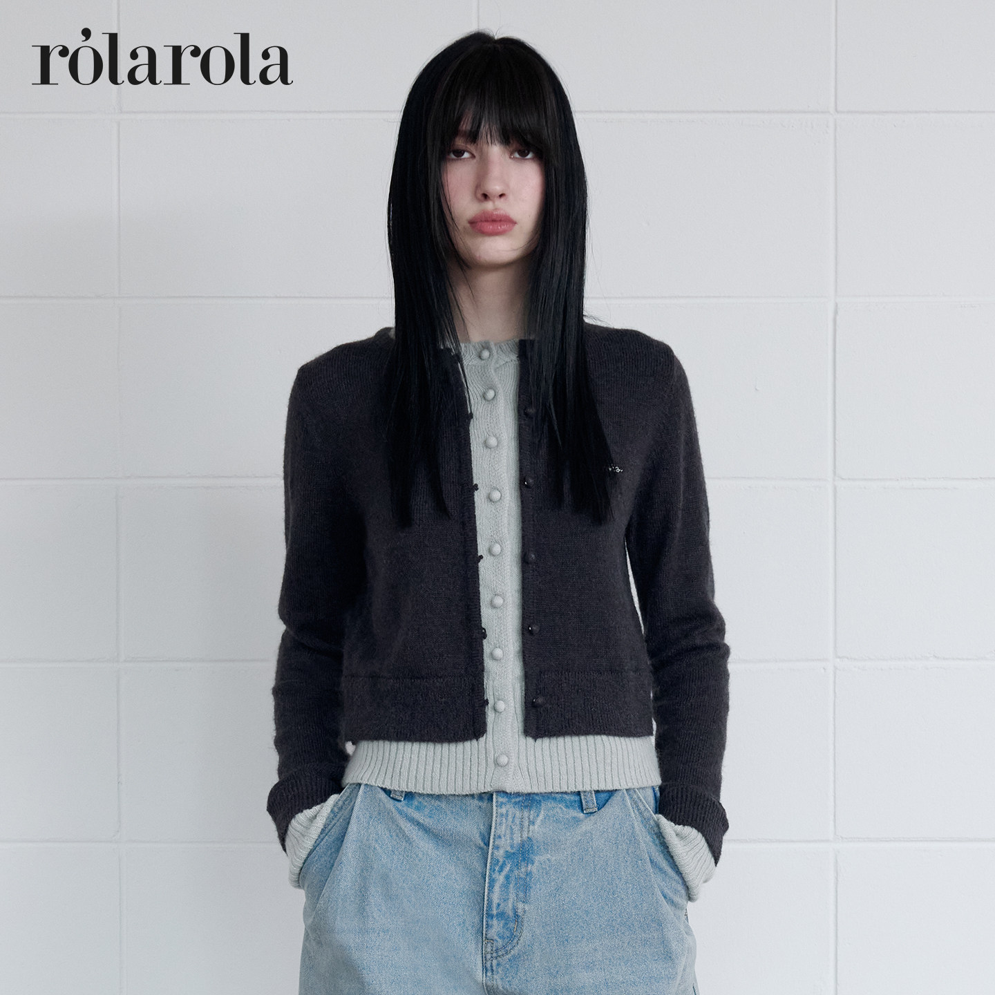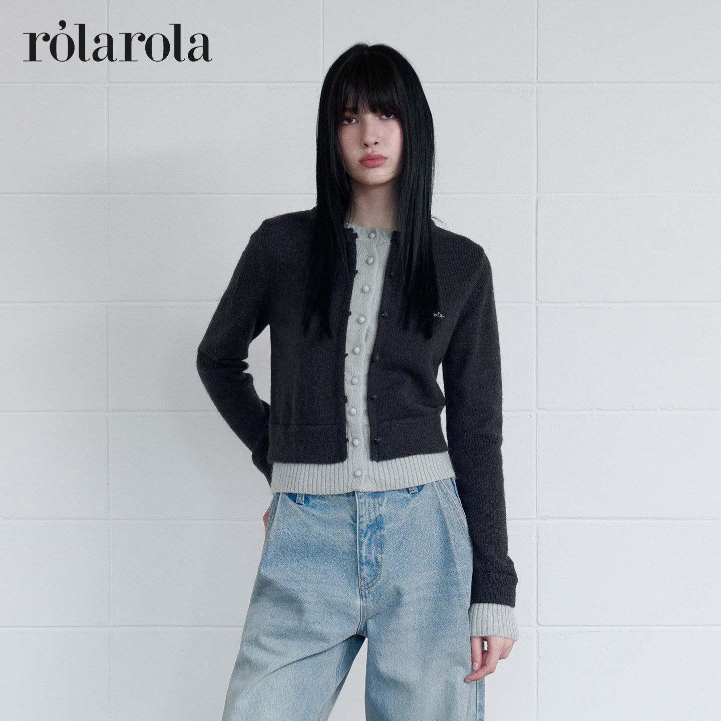 ROLAROLA25年秋冬新款羊毛针织开衫女短款双排扣可爱风假两件叠穿