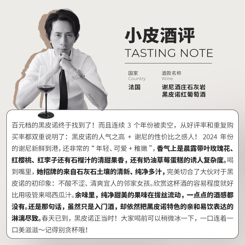 百元黑皮诺口粮!法国卢瓦河谢尼酒庄石灰岩Pinot Noir干红葡萄酒