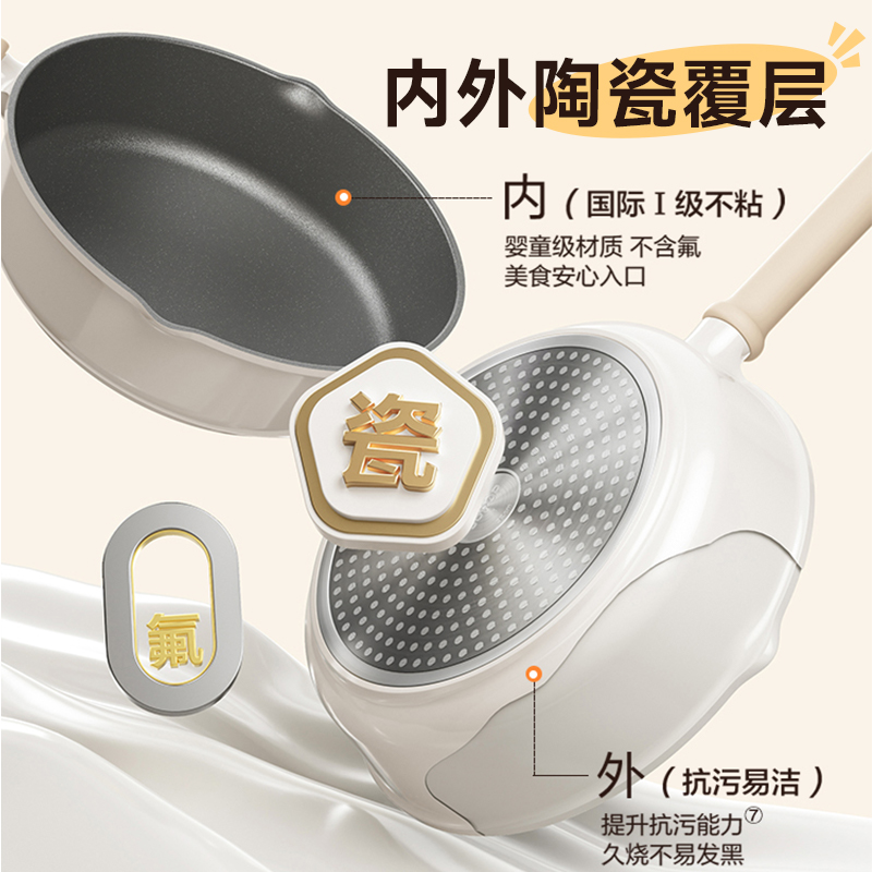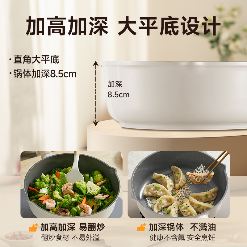 苏泊尔陶瓷平底锅家用不粘锅加深煎炒锅电磁炉燃气炒菜锅不沾煎锅