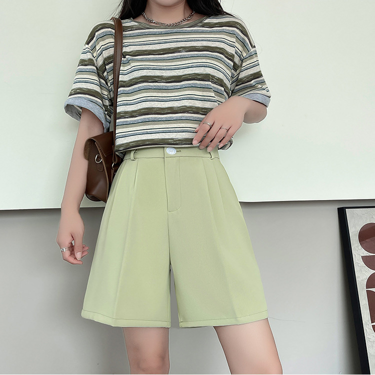 夏秋户外五分西装女士短裤韩版高腰显瘦宽松阔腿裤薄款休闲七分裤