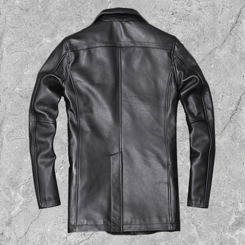 头层牛皮 真皮皮衣男 风衣中长款 翻领大码纯皮外套工厂捡漏单衣